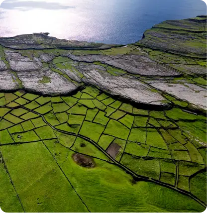Perched at the edge of Ireland’s western waters, glittering on the horizon of Galway Bay and close to the spectacular views of the Cliffs of Moher, the Arann Islands have a weathered history and rugged landscape which folds together ancient and modern in three green, stone walled jewels of land.