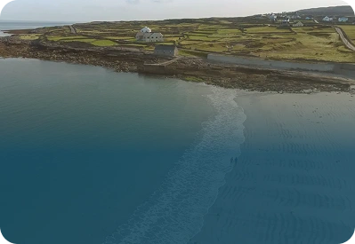 Inisheer (Inis Oírr), the smallest of the Aran Islands is a hidden paradise where golden beaches, rolling limestone landscapes, and vibrant Gaelic culture create an unforgettable experience. From above, the island’s beauty unfolds in a stunning contrast of turquoise waters, green pastures, and winding stone walls.