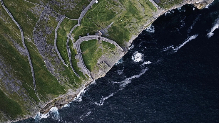 As you soar high above, you’ll witness the timeless stone forts, wild beaches, and towering cliffs that define this part of the world. From the mystical Dún Aonghasa on Inishmore to the Dún Chonchúir on Inishmaan, each sight is a stunning reminder of the island’s ancient heritage. The solitude and peace of Inisheer’s coastline, with its crystal-clear waters and golden sands, will leave you in awe.